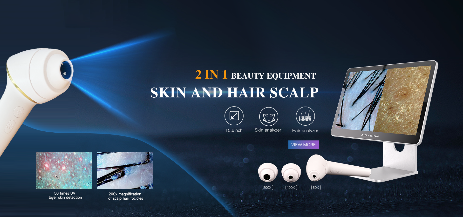 AM-213 هو كاشف جلدي طيفي جديد بخمسة ألوان يستخدم تقنية مضان الجلد والإضاءة المستقطبة الحاصلة على براءة اختراع لإنشاء تقارير وحلول فردية ذكية للعملاء بنقرة واحدة من خلال تصوير الوجه والتحليل الذكي بالذكاء الاصطناعي.